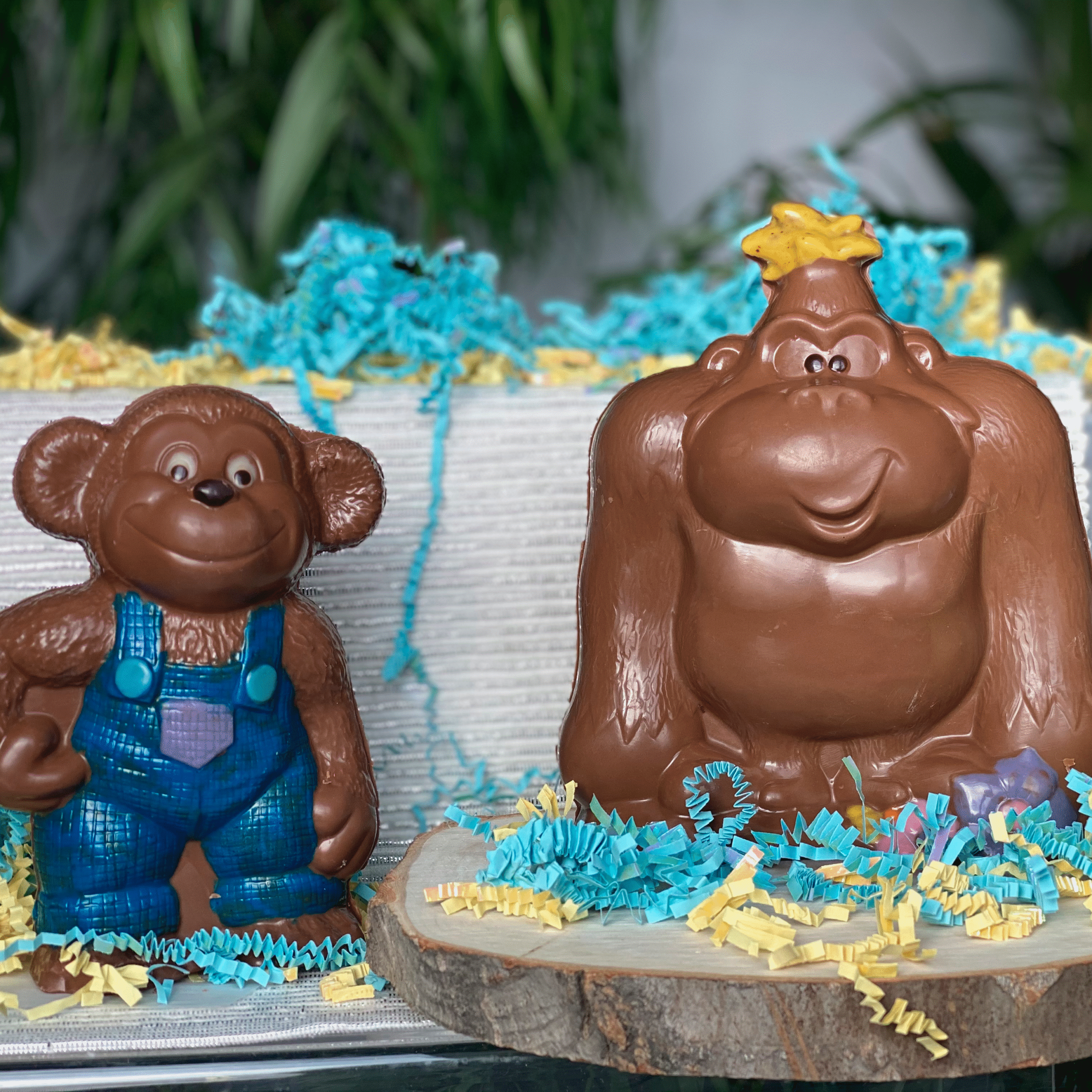 Figurine de chocolat en forme de gorille et de singe offert en noir, lait ou blanc.