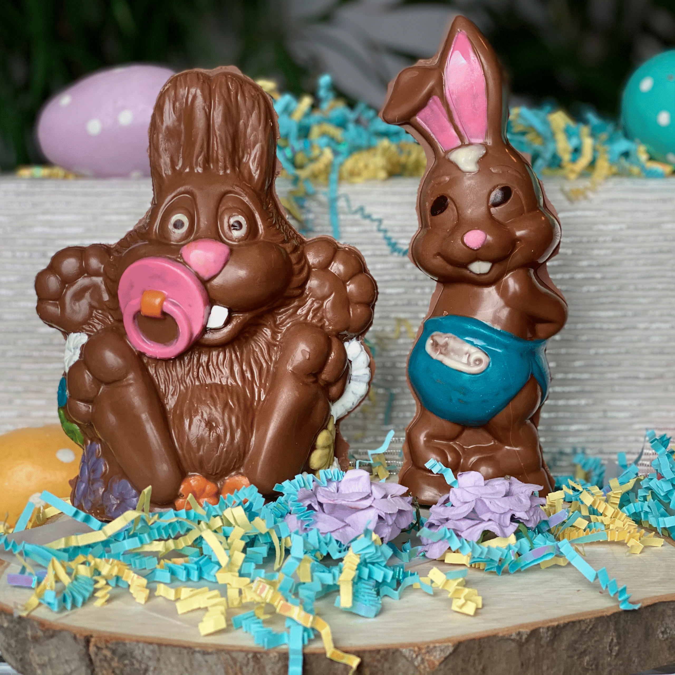 Figurine de chocolat en forme de lapin offerte en noir, lait ou blanc.