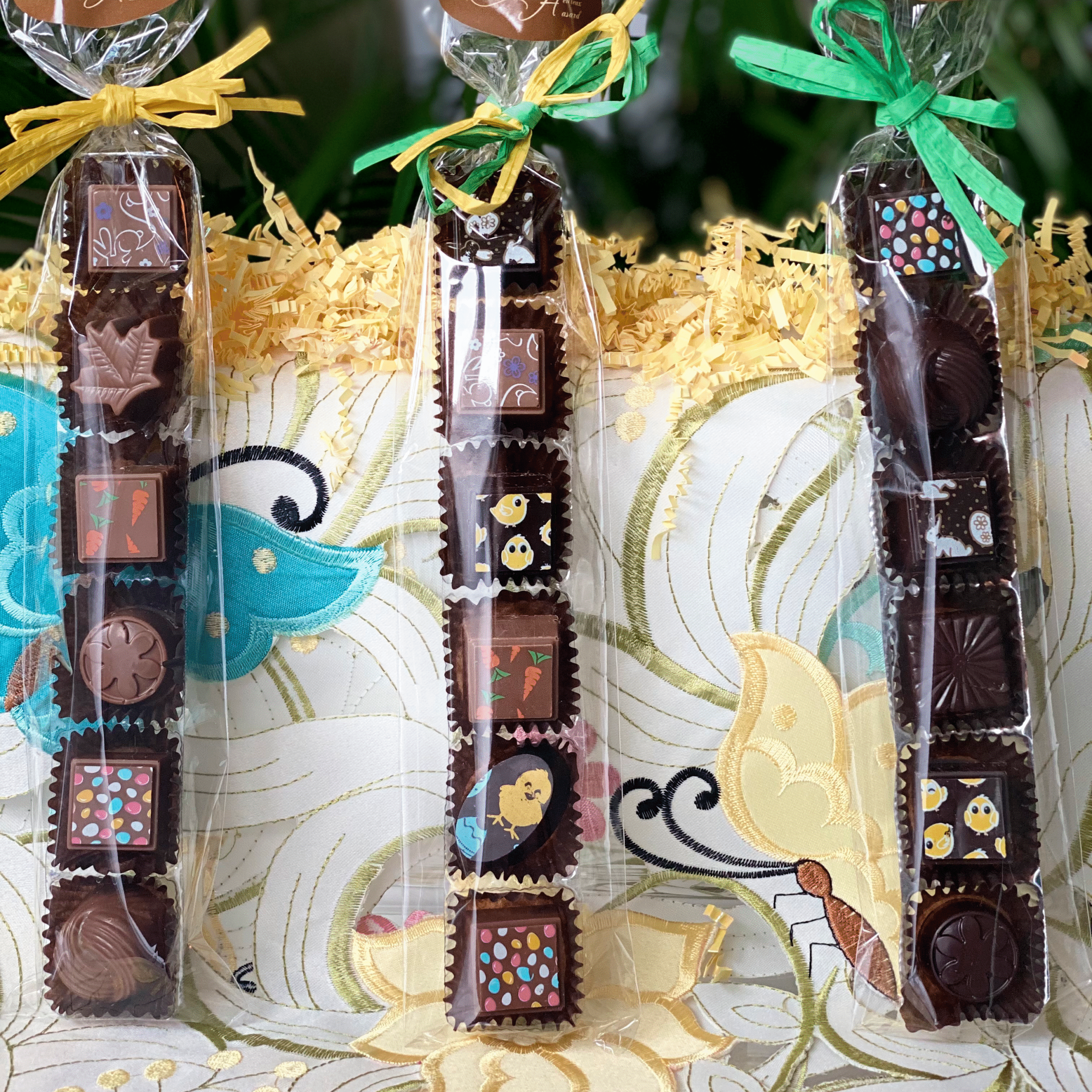 Sachet de 6 bouchées de chocolat offert en noir, lait ou mixte (noir et lait).